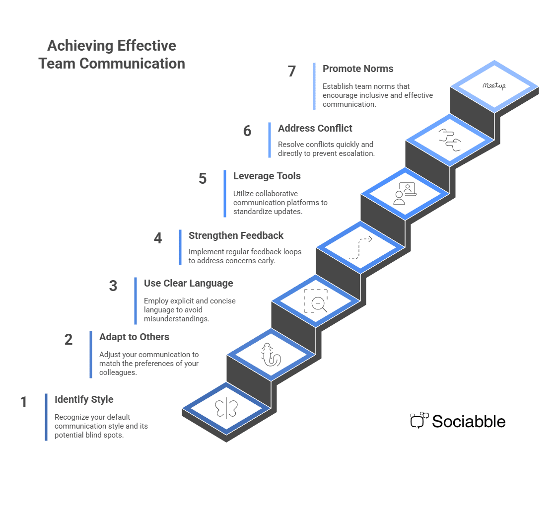 Most workplace tensions do not begin with high stakes disagreements. They often begin with mismatched communication styles, like a blunt email, a vague message in a meeting, or a teammate who talks in long paragraphs while another prefers two lines. These small mismatches create friction that accumulates over time. When teams understand these communication patterns as part of building better communication skills, they unlock clearer collaboration and fewer misunderstandings. In short: improved internal communication in the workplace. Personal communication styles influence how people share information, give feedback, and handle conflict. When assertive communication styles clash, trust and productivity suffer. In this article, we explain what communication styles are, how to identify them, and how to navigate them with practical strategies that create fairer and more effective communication at work. What Are Communication Styles in the Workplace? Communication styles are the characteristic patterns that shape how people share information verbally, nonverbally, and behaviorally at work. They influence how individuals speak, listen, respond to conflict, and interpret tone or body language. These interpersonal communication patterns shape team dynamics as much as job titles. Communication styles determine how decisions are made, how quickly projects move, and how easily people resolve misunderstandings. When teams understand these dynamics as part of their own communication skills, they avoid assumptions and create space for more inclusive and productive collaboration. The 5 Most Common Communication Styles (With Real Workplace Examples) Most people use a combination of their own communication styles, but one often shows up as their default. Recognizing these patterns helps reduce misinterpretation and strengthens how teams collaborate. 1. Assertive Communication Assertive communicators express their thoughts clearly and respectfully. They engage in expression and active listening as emotional intelligence-based communication tactics, balancing their own needs with the needs of others to keep discussions focused on shared outcomes. To communicate effectively, they tend to demonstrate confidence, directness, and healthy boundaries. Their listening style involves paraphrasing and asking open questions to confirm understanding. A common example is a project manager who states deadlines early and invites questions before moving forward. This creates clarity without shutting down discussion. 2. Passive Communication Passive communicators hesitate to voice preferences or concerns, often to avoid conflict or showing their own emotions in a professional setting. This creates room for misunderstandings because others may assume agreement where none exists. They often defer decisions, use indirect language, and avoid speaking up even when something feels off. Their listening style is attentive but quiet. Picture an employee who accepts an unrealistic timeline simply because saying no feels uncomfortable. The outcome is preventable stress for both them and the team. 3. Aggressive Communication Aggressive communicators push their ideas with strong intensity and a dominant style, sometimes at the expense of others, and sometimes creating a hostile environment. Their tone and behavior can overwhelm quieter colleagues. They often interrupt, dominate conversations, or use forceful body language as part of their aggressive style. Their listening style is reactive or dismissive because they are focused on expressing their point, and they don’t listen to diverse perspectives. A typical example is a teammate who raises their voice when challenged or frames disagreement as a personal attack. This aggressive communication style makes collaboration more fragile and discourages open dialogue with the dominant communicators in question. 4. Passive Aggressive Communication Passive aggressive communicators avoid direct conversations with co-workers yet express frustration indirectly. Instead of sharing concerns clearly, they use subtle resistance as part of their passive style. Common traits of passive aggressive employees include sarcasm, avoidance, or backhanded comments. Their listening habits often include masked disagreement. For example, someone using a passive communication style might include saying “It is fine” during a meeting but later miss a deadline to express dissatisfaction. The passive aggressive communication style behaviors signal that something was not addressed openly, and is commonly regarded as a somewhat indirect and manipulative communication style. 5. Analytical Communication Analytical communicators prioritize logic, data, and structure. They value clarity over emotional framing and prefer discussions rooted in evidence. These purely functional communicators are detail oriented and objective, and their listening style focuses on facts rather than tone. Think of a co-worker who requests a complete dataset before weighing in on a decision. Their approach brings precision but can feel slow or detached to more relational team members. How Nonverbal Communication Influences Workplace Dynamics These different types of communication styles are not just about what people say. They are shaped by posture, tone, and other nonverbal signals that color how messages are perceived. These cues often explain why two people interpret the same sentence differently. Body Language and Tone Eye contact, posture, and pacing influence how messages land. A calm sentence paired with tense body language creates confusion. Friendly content delivered with a flat tone can sound uninterested to co-workers. These mismatches lead people to trust the nonverbal message more than the verbal one. Listening Habits To practice active listening means building trust, because it shows attention and respect. Distracted listening, even if accidental, creates friction. Many employees interpret poor listening as disregard rather t