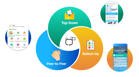 Master all three dimensions of employee communication: top-down for clear leadership messaging, bottom-up for employee insights and feedback, and peer-to-peer for fostering collaboration.